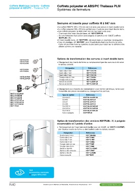 Serrures et inserts pour coffrets H ≤ 847 mm
