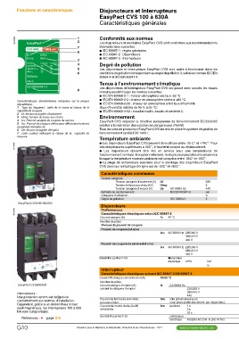 Caractéristiques standardisées indiquées sur la plaque Les disjoncteurs et auxiliaires EasyPact CVS sont conformes aux recommandations