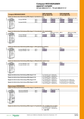 DB111455 Equipé de déclencheur électronique Micrologic 2.3 (protection LSOI) 4P 3d, 4d, 3d + N/2 3P 3d 4P 3d, 4d, 3d + N/2