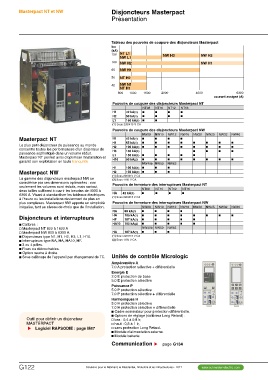 Tableau des pouvoirs de coupure des disjoncteurs Masterpact