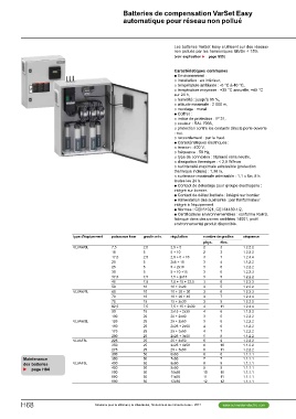 type d'équipement puissance kvar gradin min. régulation nombre de gradins séquence