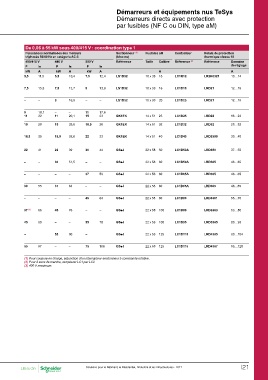 Puissances normalisées des moteurs Sectionneur (1) Fusibles aM Contacteur Relais de protection