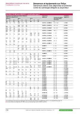 (2) Les associations avec disjoncteur GV2 ME ne sont coordonnées type 2 qu’en 400/415 V et 440 V.