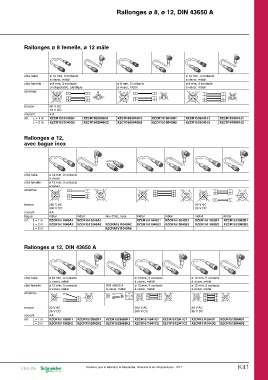 Rallonges ø 8, ø 12, DIN 43650 A